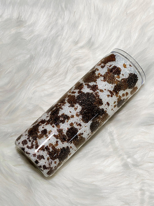 Cow Print glitter tumbler