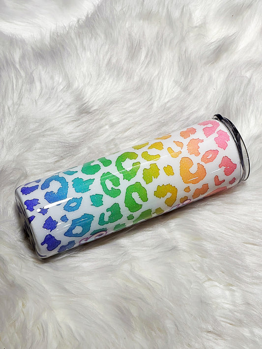 Pastel leopard print glitter tumbler